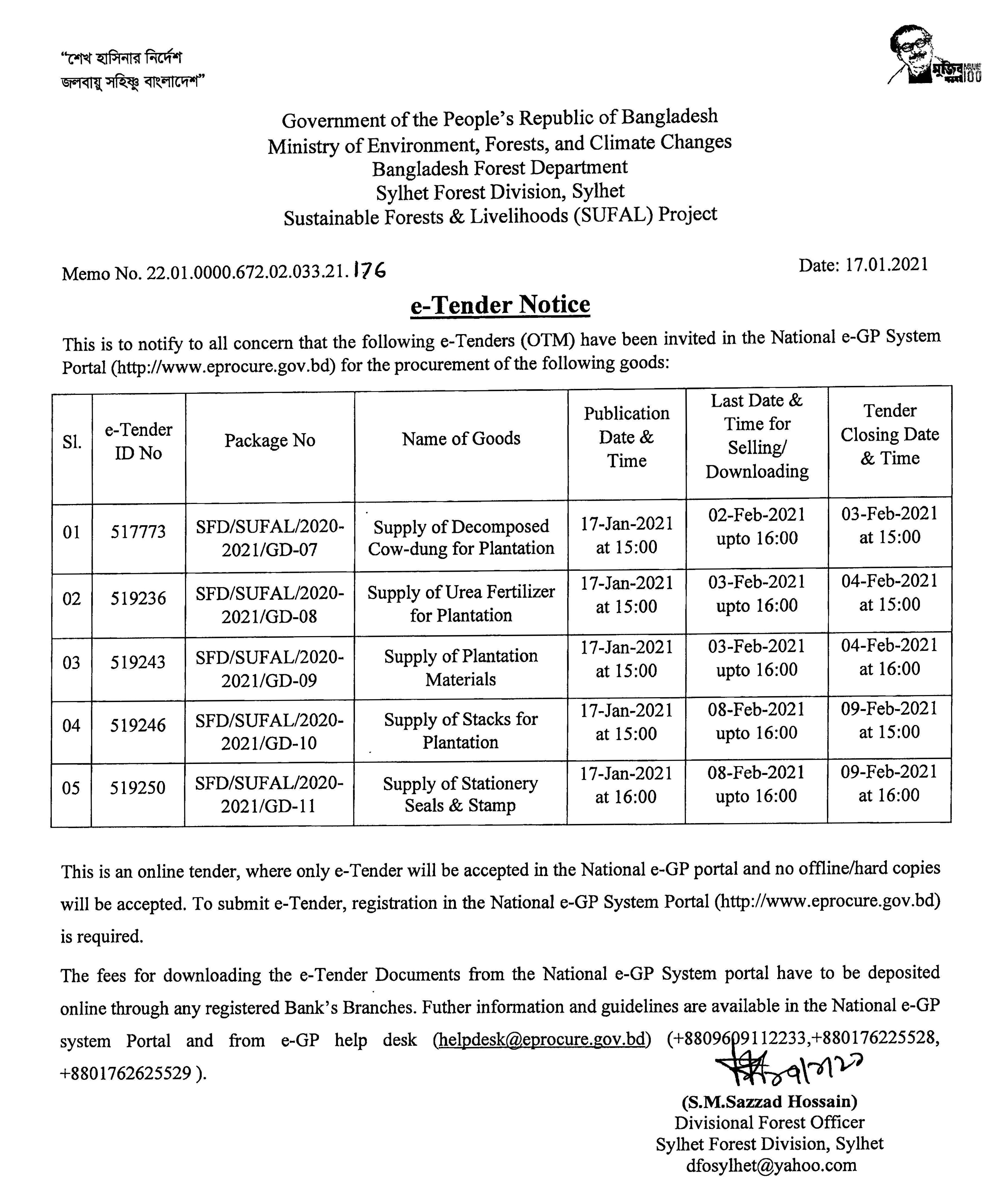 e-Tender Notice for Supply of Stacks for Plantation.