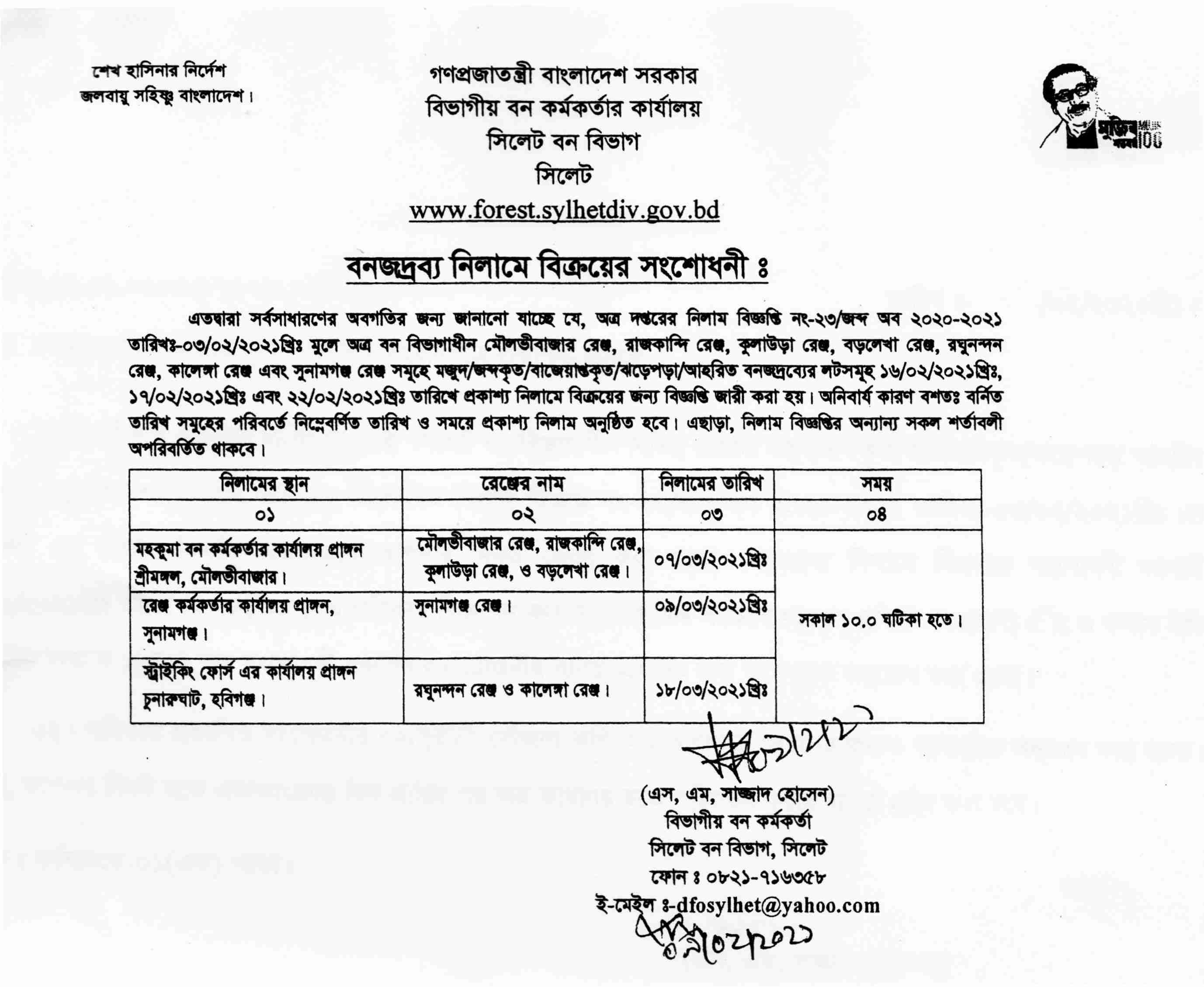 বনজদ্রব্য নিলাম বিজ্ঞপ্তি, সুনামগঞ্জ জেলা